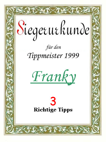 | 1999 | Franky | 3 richtige Tipps | |||