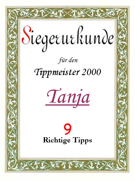 | 2000 | Tanja und Michael | 9 richtige Tipps | |||