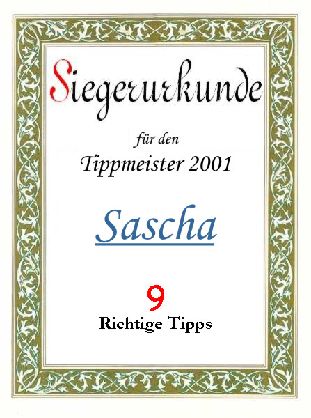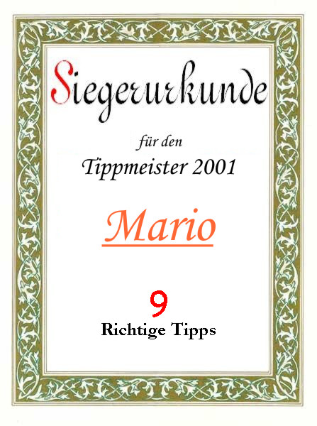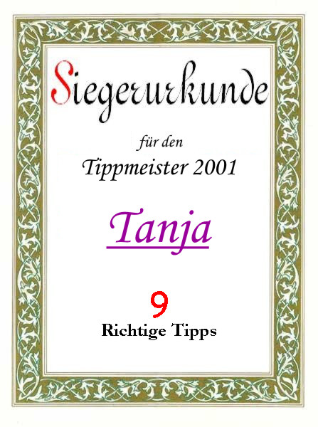 | 2001 | Tanja , Sascha und Mario | 9 richtige Tipps | |||