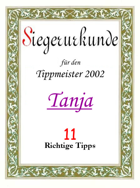 | 2002 | Tanja | 11 richtige Tipps | |||