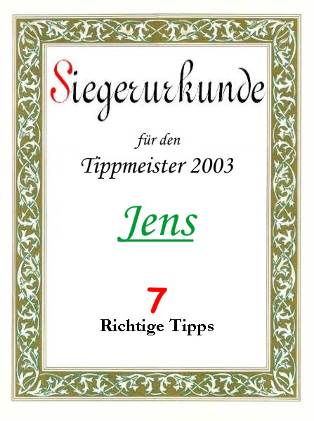 | 2003 | Jens | 7 richtige Tipps | |||
