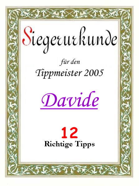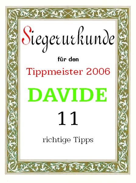 | 2006 | Davide | 11 richtige Tipps | |||